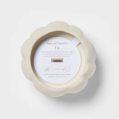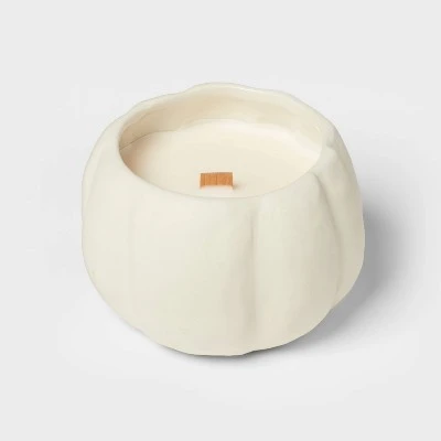 Bring summer nights to life with this delightful 12oz Brushed Abstract Pumpkin Ceramic with Woodwick and Dustcover Spice Vanilla Fig Candle – Threshold™. Imagine curling up with your favorite book and feeling a sweet aroma fill the air. The soy wax blend burns evenly and longer, so you can relax in the scent of fig and spice all night long. And the ceramic holder adds a touch of elegance to any room. Let the 12oz Brushed Abstract Pumpkin Ceramic with Woodwick and Dustcover Spice Vanilla Fig Candle from Threshold™ fill your home with summery vibes.