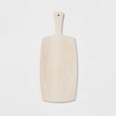 Add sleek style to your serveware collection with this White Rubberwood White Washed Serving Board from Threshold™. This rectangular serving board makes a great addition to your dining table. It showcases a white washed rubberwood finish to bring a fresh touch of natural appeal. This stylish serving board is perfect for serving freshly cut fruits, cheeses, appetizers and more. It comes with an attached handle at one end that provides a grip for convenient carrying, and it can be spot cleaned for easy care.