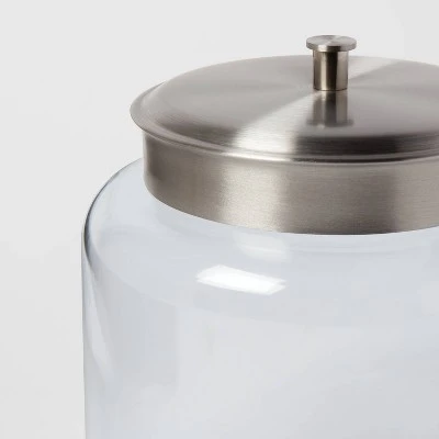 Add a practical and stylish storage space for sugar, spices, candy and other things with this Metal Lid Glass Jar from Threshold™. The simple and stylish design, along with its spacious 192-ounce capacity, makes it great for sorting all sorts of items around the house or office, while the stainless steel metal lid keeps the items fresh inside. The clear glass allows the contents of jar to be easily seen, while the wide-mouth opening accommodates a scoop or a spoon for easy access to its contents. Place this clear glass jar around your home to hold knickknacks, or put in your kitchen for great looking storage.