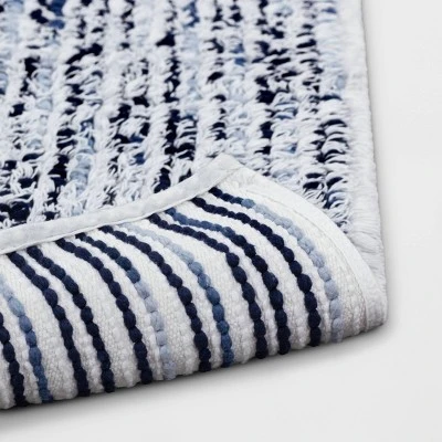 Add texture, warmth and style to your bathroom floor with the 20"×32" Spacedye Striped Bath Rug from Threshold™. This simple yet stylish bath rug features 100% cotton construction for softness underfoot, and is designed with an attractive tufted stripe pattern that will easily pair with a wide variety of bathroom decor, linens and other accessories. The rectangular size and 20-inch by 32-inch dimensions are great for placing in front of your sink, near your tub or anywhere you’d like to add a little warmth and softness to a cold bathroom floor.
