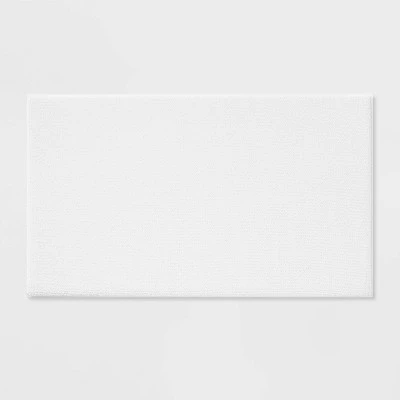 Step out of the shower and into luxury with this Fine Chenille Memory Foam Bath Rug from Threshold™. The memory foam lining brings you maximum comfort while you dry off and get ready to start your day, and it has a PVC backing to help keep it from slipping or sliding when you step on it. The knitted construction adds a fine finish to the whole. Toss it by the tub or place it in front of the vanity to enjoy its plush comfort as you go through your morning routine.
