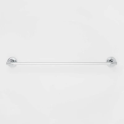 Bring simple yet elegant style to your bath decor with this 24-Inch Clean Towel Bar from Threshold™. This practical towel bar makes a great bathroom essential. It features a clean single bar design with rounded ends in a solid stainless steel finish that easily coordinates with a range of bath accessories and decor. The 24-inch length fits well in most spaces, and is suitable for hanging your towels, robes and clothing in one place. Plus, it’s easy to install with mounting hardware. You can install it close to your sink, tub or shower for functional use.