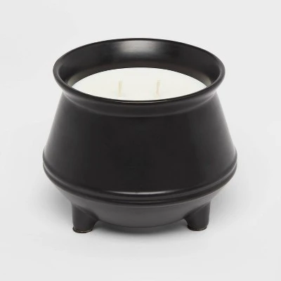 Refresh your mood with the soothing aroma of this 28oz XL Cauldron Candle Black from Threshold™. This scented candle comes in a black jar, and has a mix of firewood and patchouli scents to give any room a calming atmosphere as it sits pretty on a shelf or side table. Made with palm wax and paraffin wax, this jar candle burns for about 80 hours, so light it up whenever the mood strikes and make any day special.
