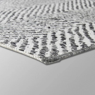 Give your living space a cool contemporary flair with this classic Herringbone Outdoor Rug from Threshold™. This rectangular accent rug comes in a bold black and white herringbone pattern, adding timeless appeal while dressing up your floor space to perfection. The neat, finished edge lends polished flair to the whole. This versatile accent rug can be tossed in any corner of your home — from the patio to your living room — for a chic update. Low on maintenance, this accent rug just needs to be wiped or spot cleaned for an instant refresh.