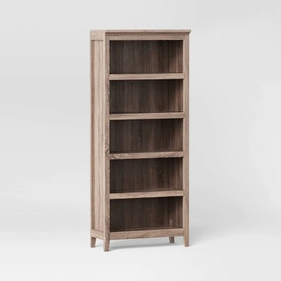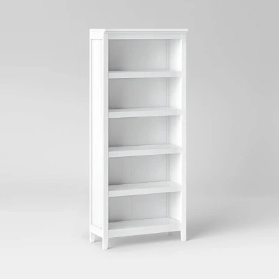 The Carson 5-Shelf Bookcase from Threshold is the perfect size and fit for any room in the home. Made from durable wood, this bookshelf features five spacious shelves for displaying your favorite books, art and collectibles. Clean, modern lines make this piece easy to mix in with any style of decor, whether in your bedroom, living room or home office.