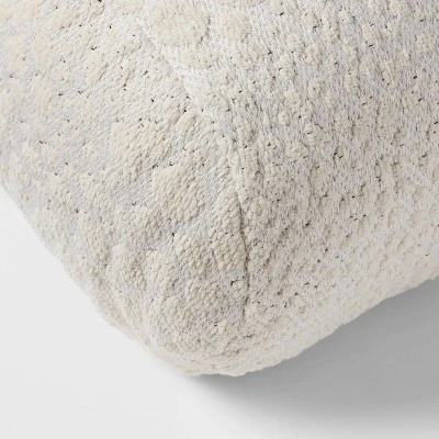 Add some feline flair to your seating spot or bedscape with this Luxe Cheetah Jacquard Round Decorative Pillow from Threshold™. In a cylindrical silhouette, this bolster throw pillow has an ivory-colored surface adorned with tonal, raised cheetah spots for a tastefully textured aesthetic. It is made of jacquard fabric with comfy filling to provide plenty of cushioned comfort while you sit and relax.