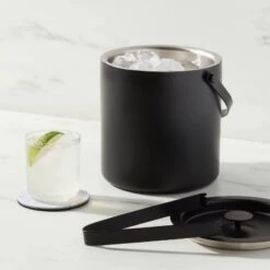 Whether you’re refreshing the mood with drinks when gathering with family or friends, this 94-Ounce Metal Ice Bucket from Threshold™ will keep you prepared for any occasion. Complete with lid, this black ice bucket makes the perfect choice to store ice and keep it handy. It comes with a built-in handle to easily move around spaces. Simply load up the ice bucket and serve family or guests their choice of chilled drinks.