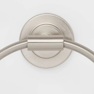 Add functional flair to your bathroom decor with the Clean Towel Ring from Threshold™. The strong SnapGrip®️ technology makes for a quick and easy installation. The clean and simple design of this towel ring easily coordinates with a wide range of bathroom styles. Towel ring is finished in polished chrome. Easily fitting small spaces, the sturdy 6.5-inch length towel ring holds up to 10 pounds and can hold more than one towel. Mounting components easily install with the included hardware and are concealed for a streamlined look.