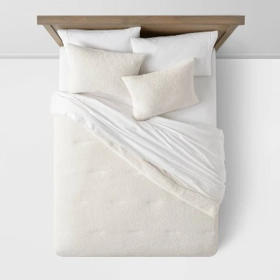 Instantly enliven the look and feel of your bedroom decor with this Cozy Chenille Comforter & Sham Set from Threshold™. This decorative comforter set includes one comforter and two shams, each crafted from a soft chenille fabric with filling to offer you cozy comfort as you snooze away the night. Designed in a solid hue with a textured chenille finish, this comforter set lends luxe style to your bedroom decor, while blending seamlessly with your existing decor style. Coordinate these pieces with contrasting sheets and decorative shams to create a cozy sleeping nook you’re sure to love.