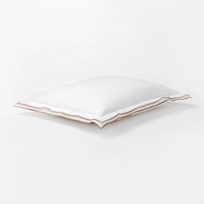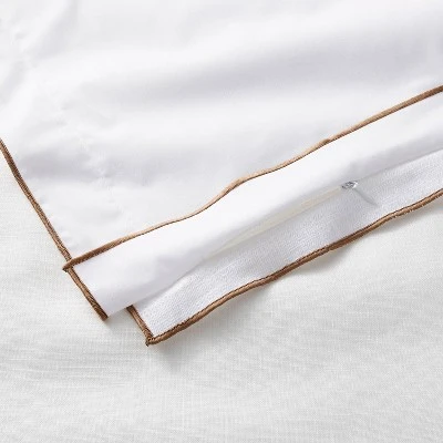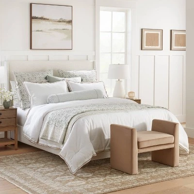 This solid Double Flange Merrow Stitch Comforter & Sham Set from Threshold™ designed with Studio McGee gives you ample options to decorate your bedscape. This coordinated bedding set includes two standard shams and a matching comforter that features double flange edges with merrow stitching for an elegant look. Made from cotton material, this comforter bedding set brings you year-round comfort.