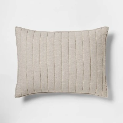 Update the look of any room in your house with this Channel Flannel Sham from Threshold™. This pillow sham is made of 100% cotton with soft filling to create a cozy resting spot, and it showcases a channel quilted design with a versatile solid finish for a tastefully textured look. This quilted pillow sham is machine-washable for easy cleaning — so you can keep your space looking its absolute best. Super soft and stylish, this decorative throw pillow is the perfect accent piece for your living room sofa or bed space.