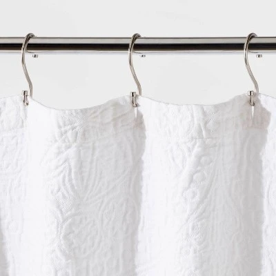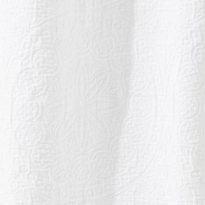 Accentuate your bathroom decor with this Matelasse Medallion Shower Curtain from Threshold™. Designed in a white hue showcasing a medallion pattern on a matelasse weave for a textured look and feel, this decorative shower curtain adds instant wow factor to your bathroom while effortlessly blending with a variety of decor styles and color schemes. Crafted from 100% cotton, it features a buttonhole top for easy installation and added convenience.