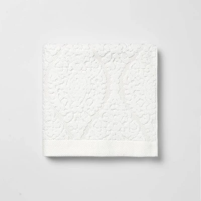 From your master bathroom to your guest bath, add a Moroccan-inspired touch to your space with this White Ogee Towel from Threshold™. With an allover woven ogee pattern and textured banded sides, this woven hand towel makes a bold statement in your bathroom decor, and it can easily be paired with a variety of decor styles and color schemes for easy use. Made with 100% cotton fabric, this cotton hand towel provides absorbent drying for efficient use, and the soft construction feels comfortable against your skin. Simply toss it in the washing machine for quick and easy maintenance.