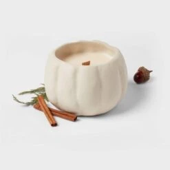 12oz Brushed Abstract Pumpkin Ceramic With Woodwick And Dustcover Pumpkin Woods Candle – Threshold™