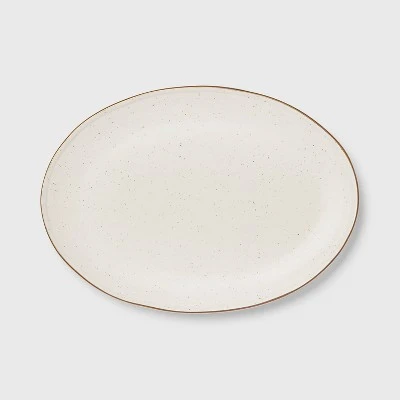 Enjoy your everyday meals in sophisticated style with the Small Ceramic Serving Platter from Threshold™. This ivory serving platter is covered with speckled hues for an eye-catching look, and helps provide the perfect base for your meals. With its microwave-safe design, this small serving platter allows quick reheating of food.